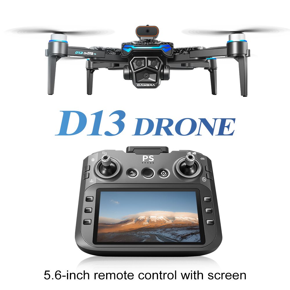 El dron D13 cuenta con una gran pantalla remota de 5,6 pulgadas y está fabricado con materiales de carbono forjado para conseguir un chasis ligero y duradero. Equipado con motores sin escobillas y vuelo estacionario con flujo óptico, ofrece un rendimiento de vuelo estable y potente. Su sistema de evitación de obstáculos en cinco direcciones garantiza una mayor seguridad durante el funcionamiento. La configuración de doble cámara incluye una lente ajustable eléctricamente, que admite los modos de disparo vertical, horizontal y cenital. Otras funciones inteligentes adicionales, como el vuelo por trayectoria y la iluminación dinámica, proporcionan versatilidad creativa y una experiencia de pilotaje atractiva.