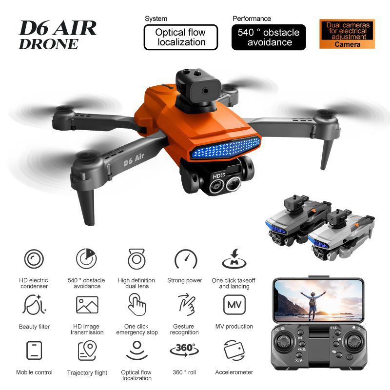 El D16Pro es un dron versátil que combina una estética dinámica con una funcionalidad avanzada. Cuenta con un cuerpo plegable y ligero adornado con una llamativa iluminación que mejora su visibilidad. Su sistema insignia de doble cámara, que incluye una lente de flujo óptico montada en la parte inferior, ofrece ángulos de disparo versátiles y ajuste eléctrico. El sistema integrado de evitación de obstáculos en cinco direcciones y el preciso sistema de vuelo estacionario con flujo óptico garantizan un vuelo estable y seguro en diversos entornos. Diseñado para un funcionamiento prolongado, funciona con una batería modular, lo que lo convierte en una opción fiable y visualmente llamativa tanto para vuelos recreativos como para fotografía aérea creativa. Dron con iluminación atractiva.