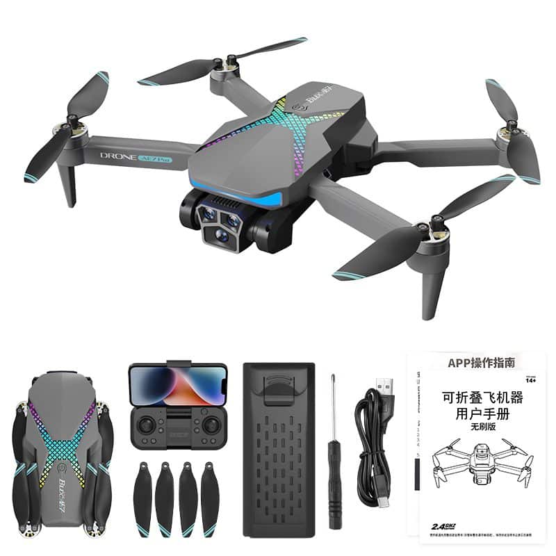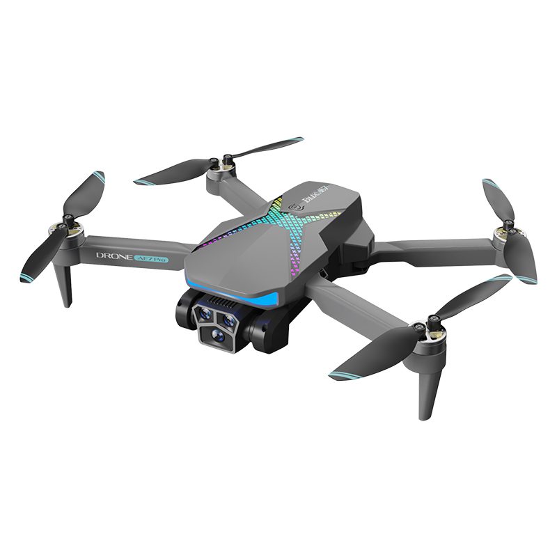El dron AE7 es un cuadricóptero con numerosas funciones que destaca por su llamativa iluminación arcoíris y su avanzado sistema de triple cámara. Diseñado para ofrecer estabilidad, utiliza el flujo óptico para volar con precisión en interiores e incorpora un sistema inteligente de evitación de obstáculos para mayor seguridad. Su cámara principal ajustable eléctricamente, combinada con el cambio de doble lente que ofrece un zoom de 50x, proporciona una versatilidad de encuadre excepcional. Los modos de vuelo inteligentes, como «Follow» y «Waypoint», permiten un funcionamiento automatizado, mientras que la fotografía por gestos y los filtros de belleza permiten realizar capturas creativas. Diseñado para facilitar su uso, cuenta con despegue/aterrizaje con un solo clic y modo sin cabeza, lo que lo convierte en una opción intuitiva y visualmente impactante tanto para pilotos novatos como experimentados.