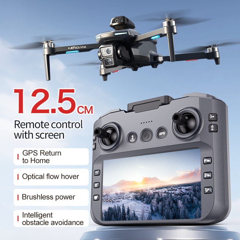 El dron GPS XT606 integra un mando a distancia con pantalla HD de 4,3 pulgadas para una supervisión inmersiva en tiempo real a través de una transmisión de imágenes 5G estable. Equipado con una cámara HD 4K, garantiza una fotografía aérea profesional. El avanzado posicionamiento GPS y de flujo óptico en modo dual garantiza un vuelo estable y un vuelo estacionario preciso. Su sistema de seguridad inteligente cuenta con retorno con una sola tecla y retorno automático activado por batería baja, pérdida de señal o distancia excesiva. Mejorado con evitación de obstáculos de 360°, el dron también admite los modos de vuelo inteligente «sígueme» y «alrededores» para un funcionamiento dinámico y manos libres, lo que ofrece seguridad y versatilidad creativa.