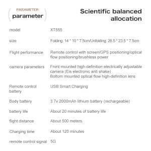 Este dron plegable de tamaño mediano integra transmisión 5G y Wi-Fi para fotografía aérea profesional. Cuenta con un sistema de doble cámara con un objetivo gran angular frontal y una cámara de flujo óptico inferior para un posicionamiento preciso, ambas estabilizadas por un servo cardán y EIS. El control remoto incluye una gran pantalla de 4,3 pulgadas para vídeo HD en tiempo real. Con GPS, permite funciones precisas de retorno a casa con una sola tecla. Una batería de 2000 mAh proporciona aproximadamente 20 minutos de tiempo de vuelo. Las funciones inteligentes incluyen planificación de puntos de referencia, modo «sígueme» y control por gestos. Cabe destacar que su sensor óptico de evitación de obstáculos garantiza la seguridad, mientras que su diseño ligero de 192 g lo exime de muchos requisitos de registro, lo que ofrece potencia y portabilidad.