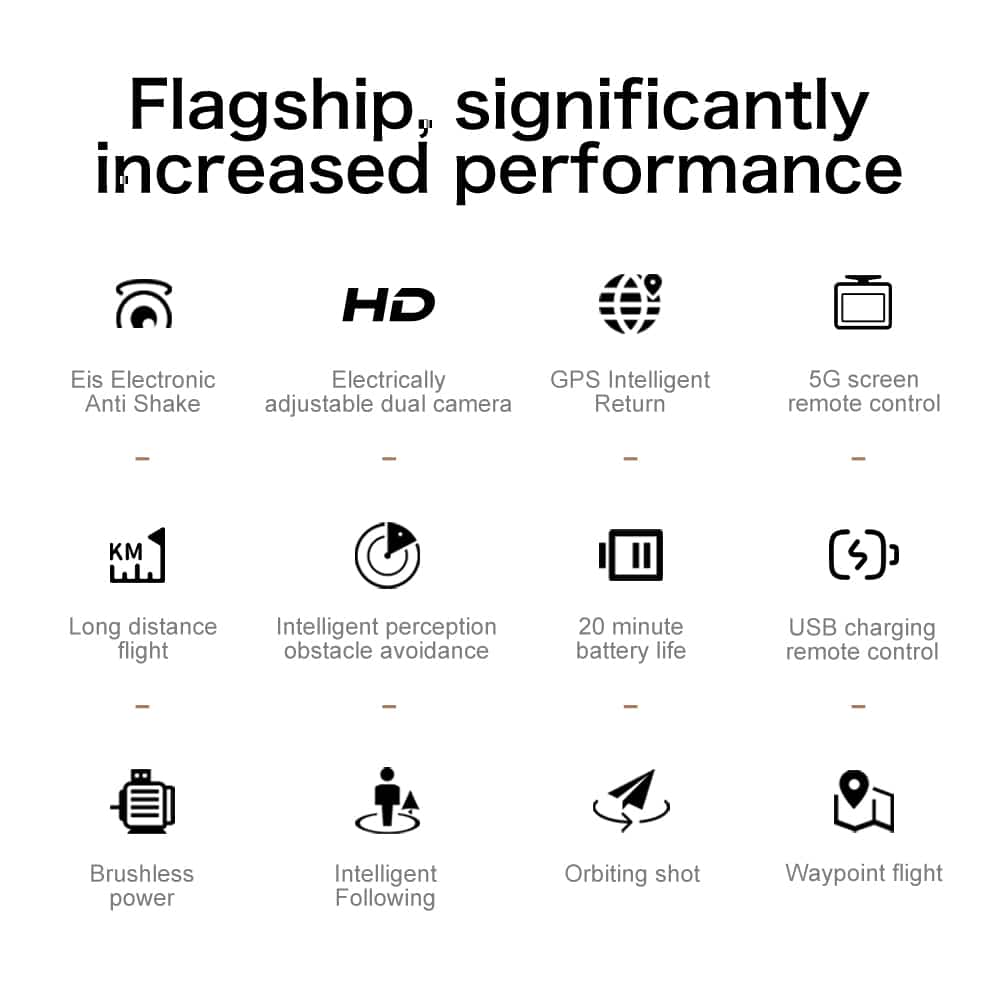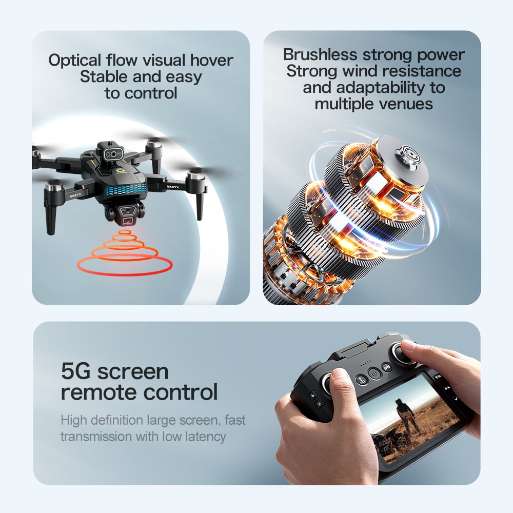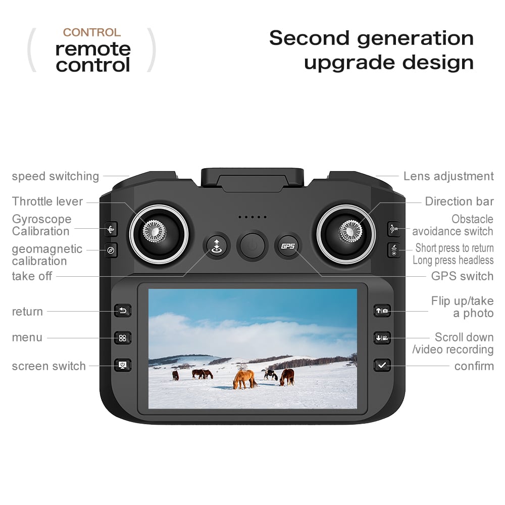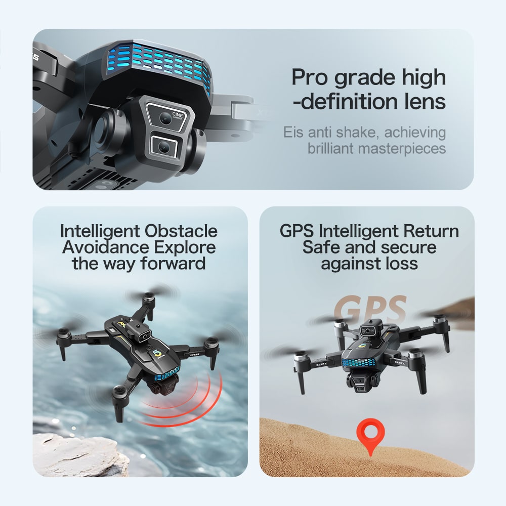Este dron plegable de tamaño mediano integra transmisión 5G y Wi-Fi para fotografía aérea profesional. Cuenta con un sistema de doble cámara con un objetivo gran angular frontal y una cámara de flujo óptico inferior para un posicionamiento preciso, ambas estabilizadas por un servo cardán y EIS. El control remoto incluye una gran pantalla de 4,3 pulgadas para vídeo HD en tiempo real. Con GPS, permite funciones precisas de retorno a casa con una sola tecla. Una batería de 2000 mAh proporciona aproximadamente 20 minutos de tiempo de vuelo. Las funciones inteligentes incluyen planificación de puntos de referencia, modo «sígueme» y control por gestos. Cabe destacar que su sensor óptico de evitación de obstáculos garantiza la seguridad, mientras que su diseño ligero de 192 g lo exime de muchos requisitos de registro, lo que ofrece potencia y portabilidad.