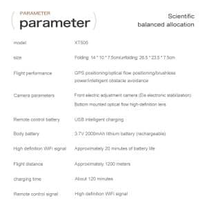 El XT505 es un dron GPS con múltiples funciones que combina a la perfección imágenes profesionales con un atractivo visual cautivador. Diseñado para un vuelo estable de hasta 1,2 kilómetros, utiliza GPS integrado y posicionamiento por flujo óptico para una navegación precisa y un vuelo estacionario fiable. Su cámara 4K HD, equipada con ajuste eléctrico frontal y estabilización EIS, captura imágenes fluidas y de alta calidad, con la ayuda de una lente de flujo óptico inferior. Las funciones inteligentes de evitación de obstáculos y retorno automático, que se activan en caso de pérdida de señal, batería baja o superación de los límites de distancia, garantizan la seguridad operativa. Mejorado con una iluminación dinámica y atractiva, ofrece un rendimiento robusto y una presencia llamativa para la fotografía aérea y los vuelos nocturnos.