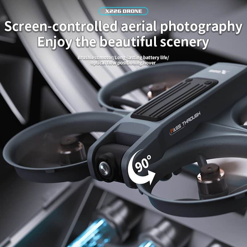 El mini dron X226, un sofisticado juguete aéreo diseñado para mejorar las experiencias aéreas. Este innovador dron cuenta con una pantalla integrada y está propulsado por un motor sin escobillas, lo que garantiza un rendimiento y una estabilidad superiores. Equipado con un casco de realidad virtual y una cámara ajustable eléctricamente, ofrece cambio de cámara dual y una función de altura fija que utiliza tecnología de flujo óptico. Otras funciones adicionales son el cambio de velocidad, el modo sin cabeza, un giroscopio de seis vías y la capacidad de realizar maniobras de giro.