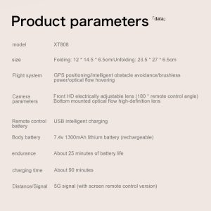 El dron GPS profesional XT808 está diseñado para obtener imágenes aéreas fiables y de alta calidad, y cuenta con una pantalla remota HD de 4,5 pulgadas con telemetría de la batería en tiempo real para una gestión informada del vuelo. Su cámara 4K HD ofrece imágenes nítidas, transmitidas en directo a través de una transmisión 5G estable. Utilizando una combinación de GPS y posicionamiento por flujo óptico, garantiza un vuelo estable y un vuelo estacionario preciso. La seguridad avanzada está garantizada gracias a la función inteligente de evitación de obstáculos por láser de 360° y a las completas funciones de retorno automático. Para una filmación creativa, ofrece seguimiento inteligente, vuelo envolvente y retorno con un solo toque, lo que lo convierte en una herramienta versátil tanto para el funcionamiento autónomo como para el pilotaje manual.