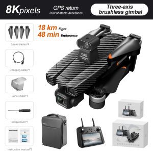 - Cámara ajustable 4K (cardán de estabilización mecánica de tres ejes + estabilización electrónica y antivibración + evitación de obstáculos por láser)